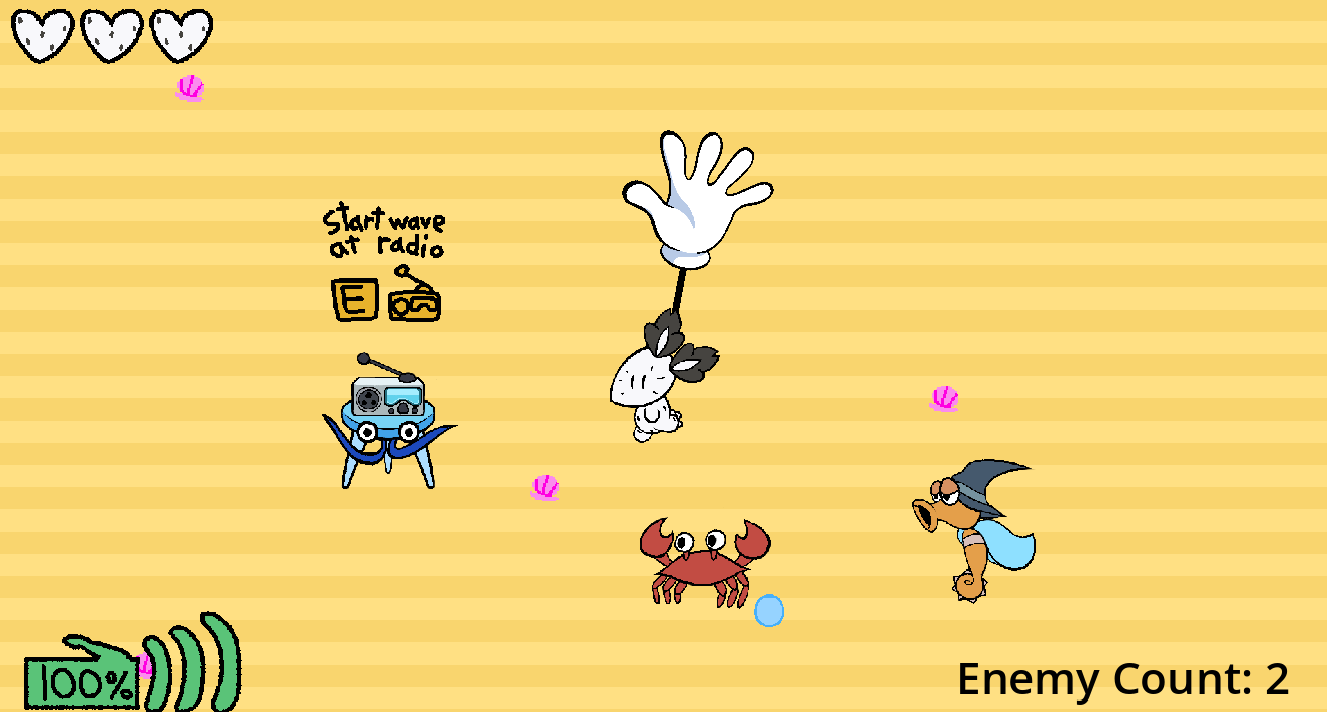 Made for Game Off 2025, and for a Group Game Project I course. WASD to move the player, mouse to move your hand left and right to attack, E to start a wave when there are no enemies left.